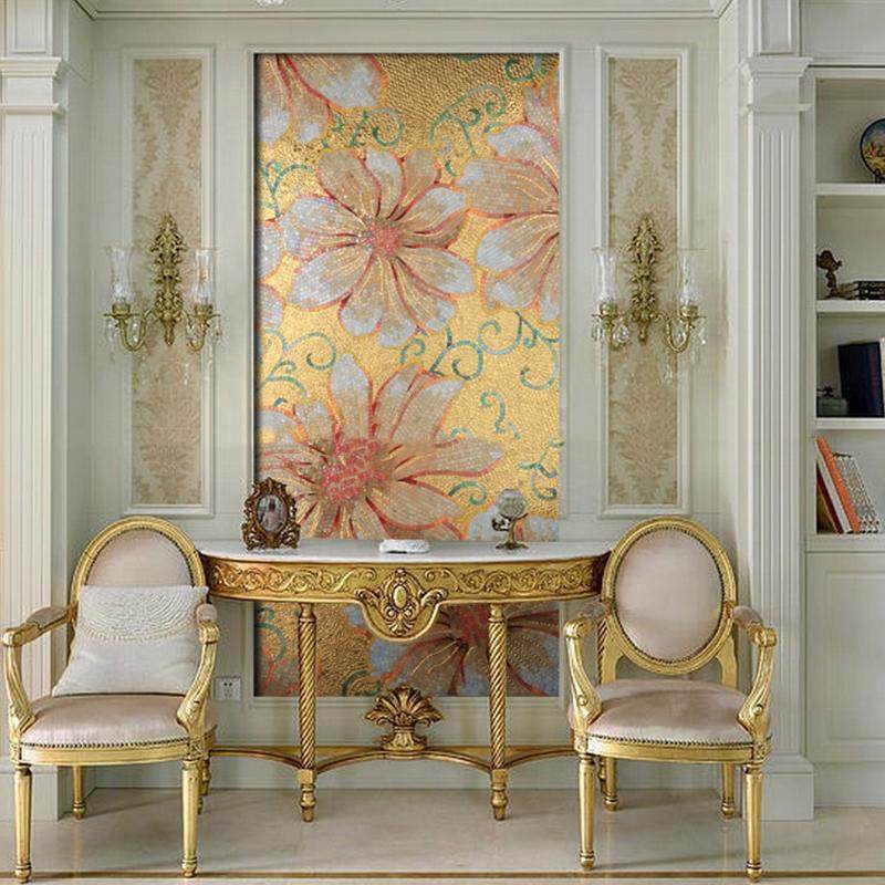 金花冰玉金色玻璃拼花拼图剪画马赛克背景墙瓷砖玄关过道电视墙贴