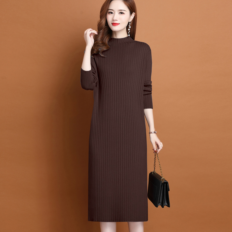 半高领毛衣裙针织连衣裙内搭秋冬女中长款加绒加厚一体绒打底长裙