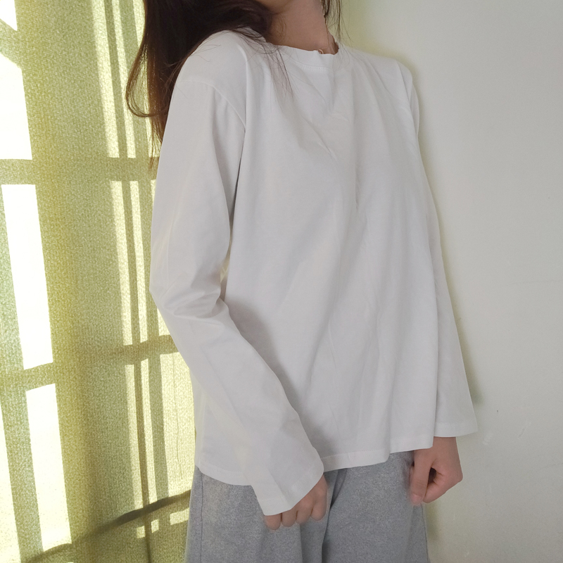 纯白色长袖t恤女打底衫棉质宽松卫衣内搭上衣纯色打底衣秋季白体
