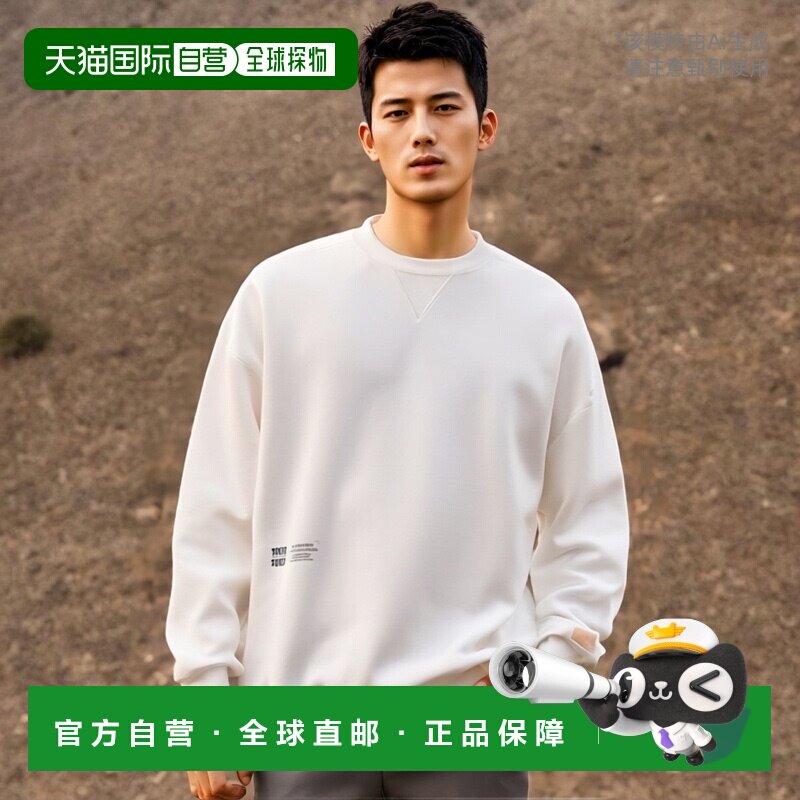 330g纯棉落肩圆领卫衣男女通款纯色毛圈长袖宽松秋冬白色打底衫潮