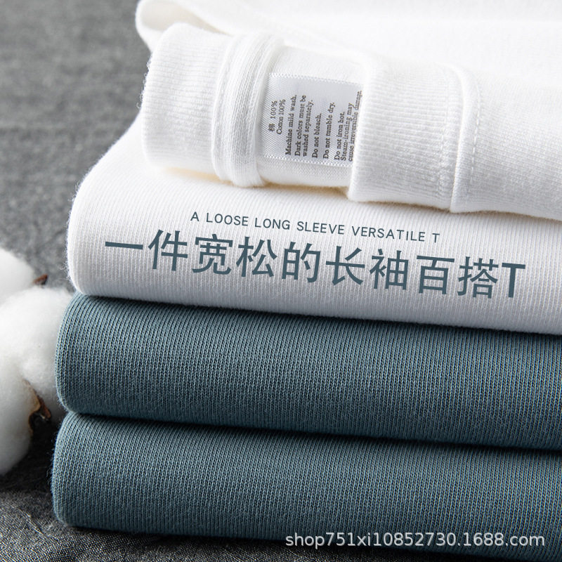 日系320G重磅长袖t恤男女25秋季纯棉宽松原创卫衣纯色白色打底衫