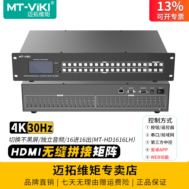 迈拓维矩MT-HD1616LH 高清无缝拼接矩阵hdmi16进16出4k电脑服务器主机切换器显示器拼接处理器音视频分离加嵌