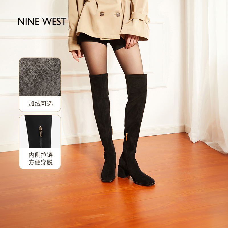 Nine West/玖熙不掉筒过膝长靴女秋冬新款加绒弹力瘦瘦靴高跟靴子