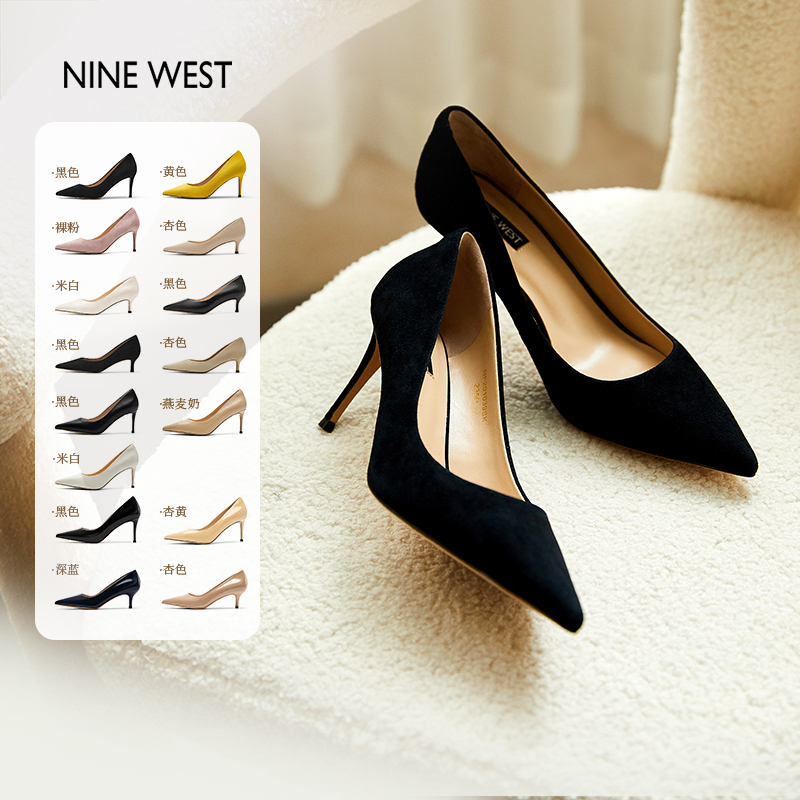 Nine West/玖熙2025年夏季新款高跟鞋女尖头绒面细跟通勤单鞋女