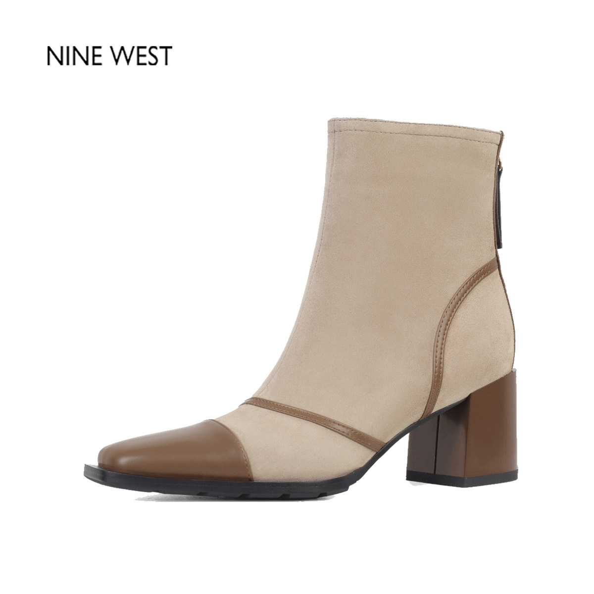 奥莱专供Nine West/玖熙2025冬羊反绒短靴女方头通勤粗高跟时装靴