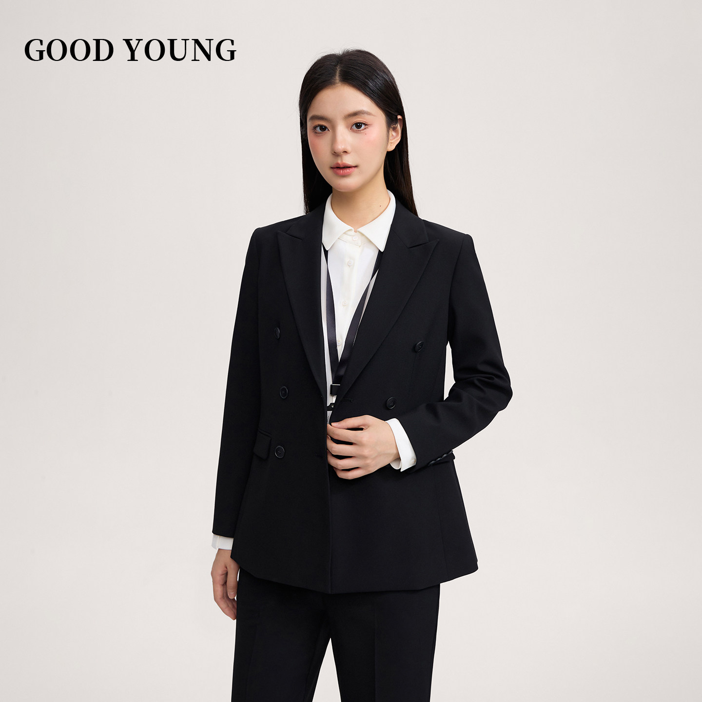 GOOD YOUNG双排扣套装女职业正装考公考编教资面试修身显瘦西装女
