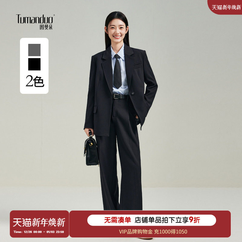 图曼朵黑色西装外套女大学生通勤面试职业商务正装西服套装西装裤