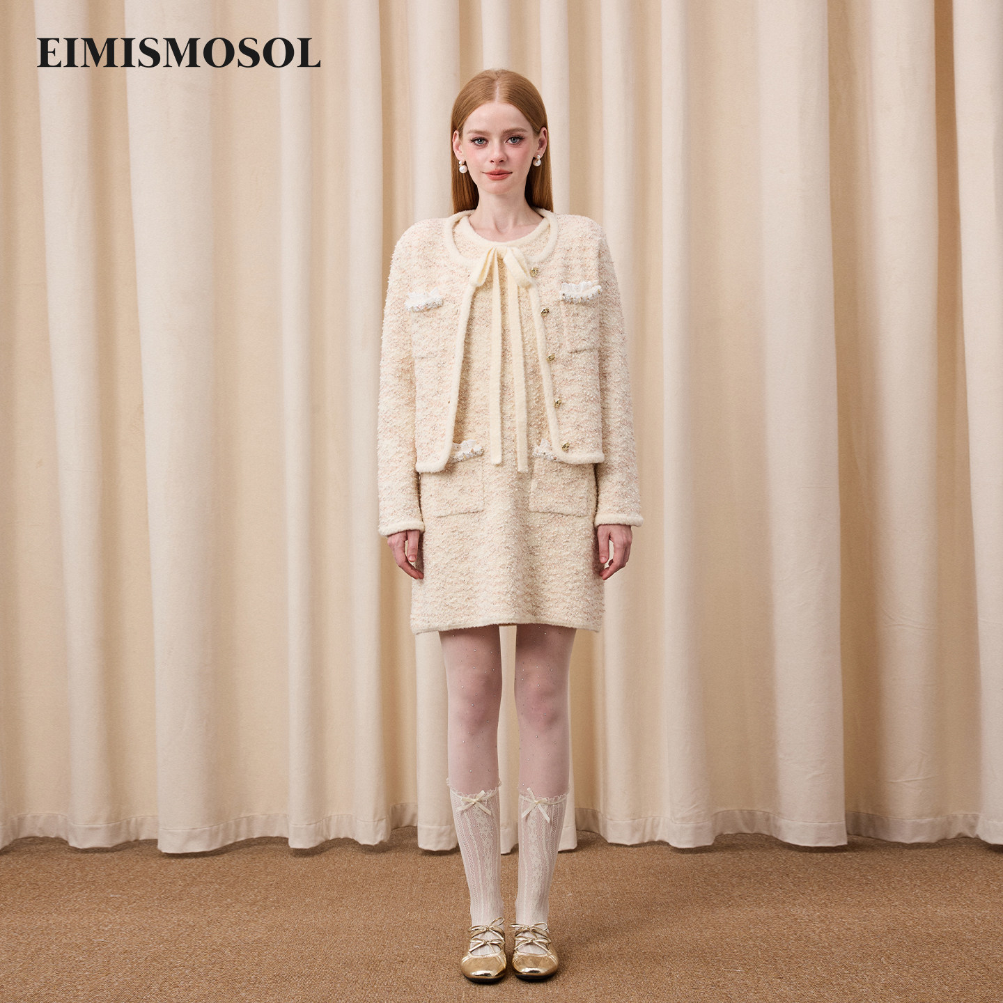 Eimismosol2026新款花边口袋针织开衫外套无袖毛衣连衣裙套装