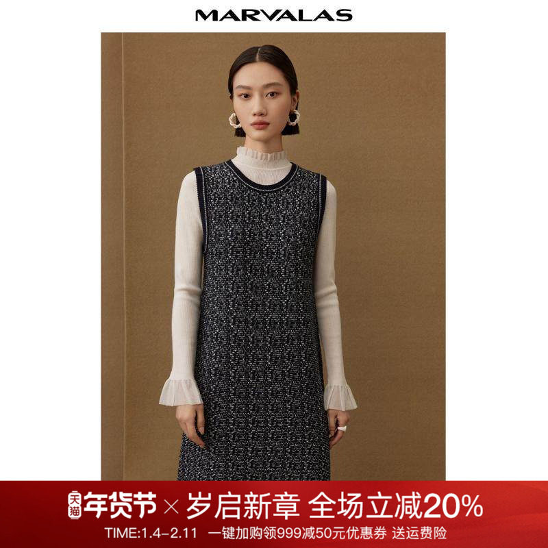 罗衣气质高领无袖毛衣连衣裙女春简单大方美拉德羊毛针织裙08870