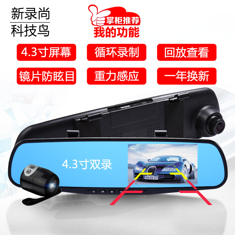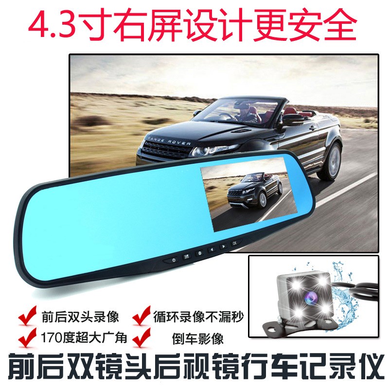 4.3寸a行车记录仪 前后双镜头后视镜高清夜视倒车停车监控车险礼