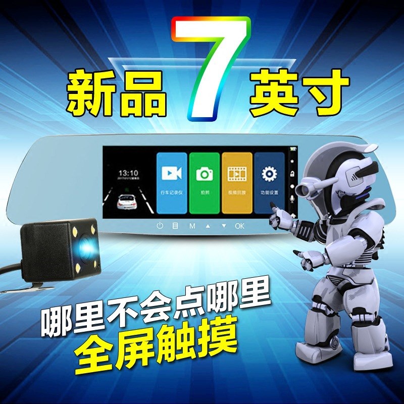 新款触屏7寸后视k镜行车记录仪倒车影像前后双镜头一体机夜视高清