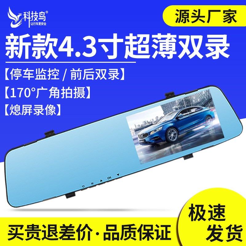直供4.3寸后视镜行车记录仪 高清夜视双P镜头dvr倒车影像