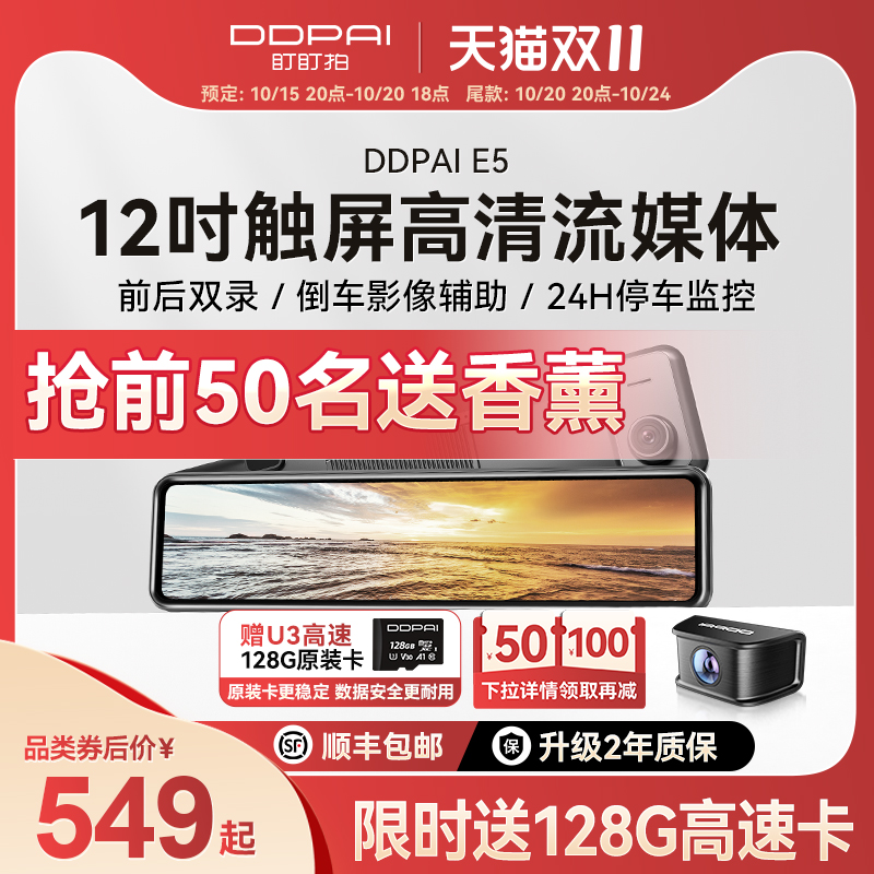 盯盯拍E5行车记录仪2K超高清夜视流媒体后视镜双镜头倒车影像一体