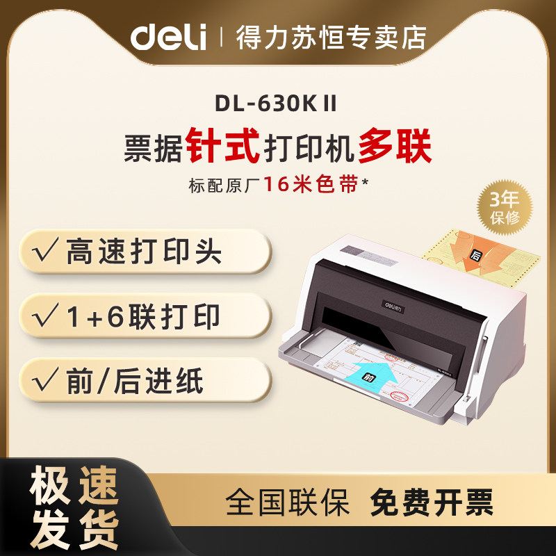得力DL-630KⅡ针式打印机增值税发票税票全新票据销售快递发货单三联单打单机送货单出库单财务办公专用