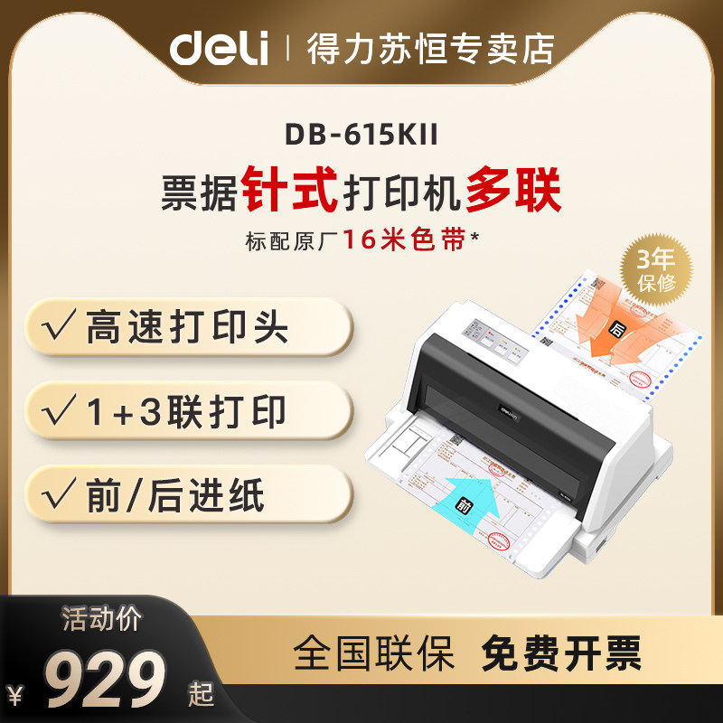 得力DB-615KII针式打印机增值税发票税票全新票据销售快递发货单三联单打单机送货单出库单财务办公专用