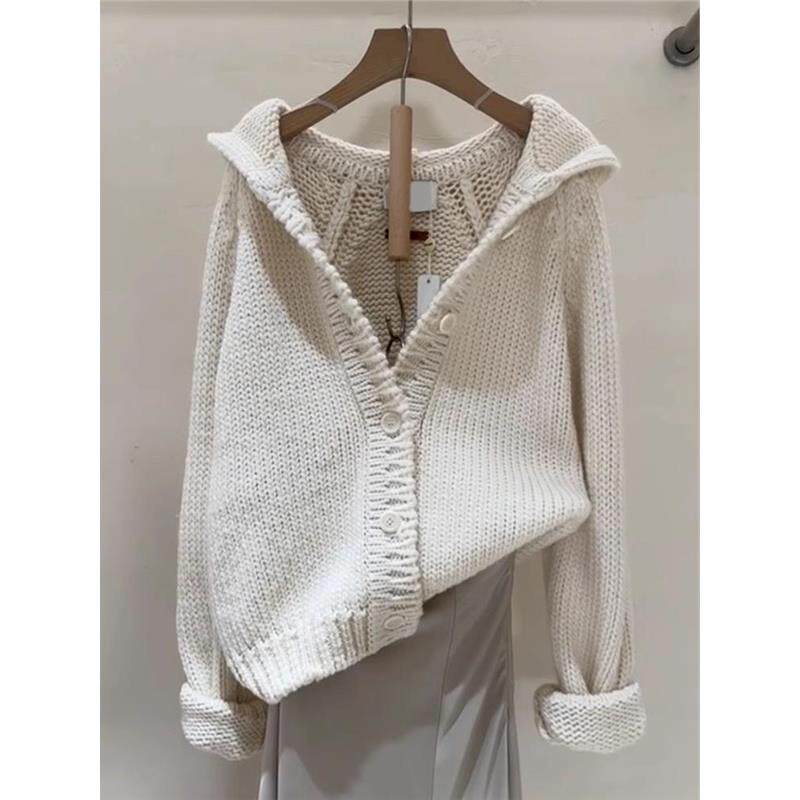 怒推!外贸单品质,独特别致深秋chic慵懒风白色针织毛衣外套女装