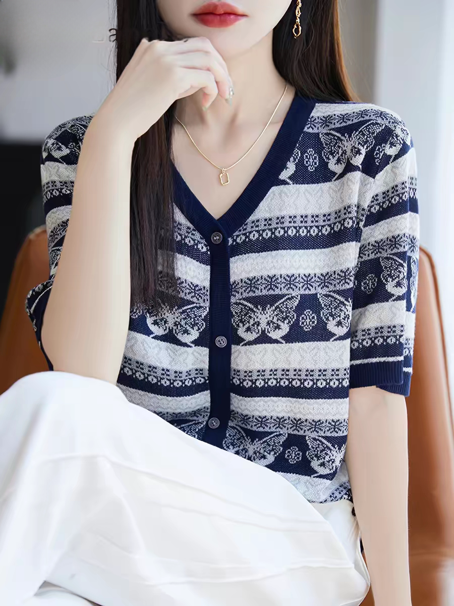 2025年早秋妈妈针织毛衣外套女装短款洋气上衣中老年薄款减龄开衫