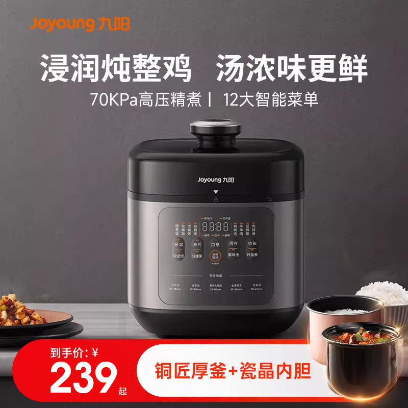 九阳电压力锅5升双胆大容量0涂层家用高压炖锅免排汽全自动多功能