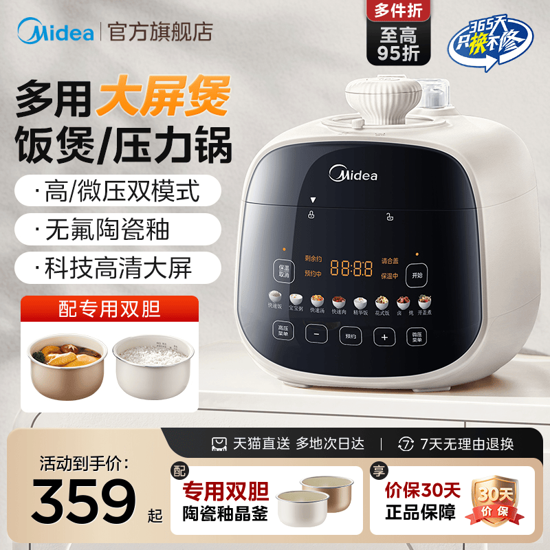 美的电压力锅家用双胆多功能智能饭煲全自动高压锅深汤快煮旗舰店