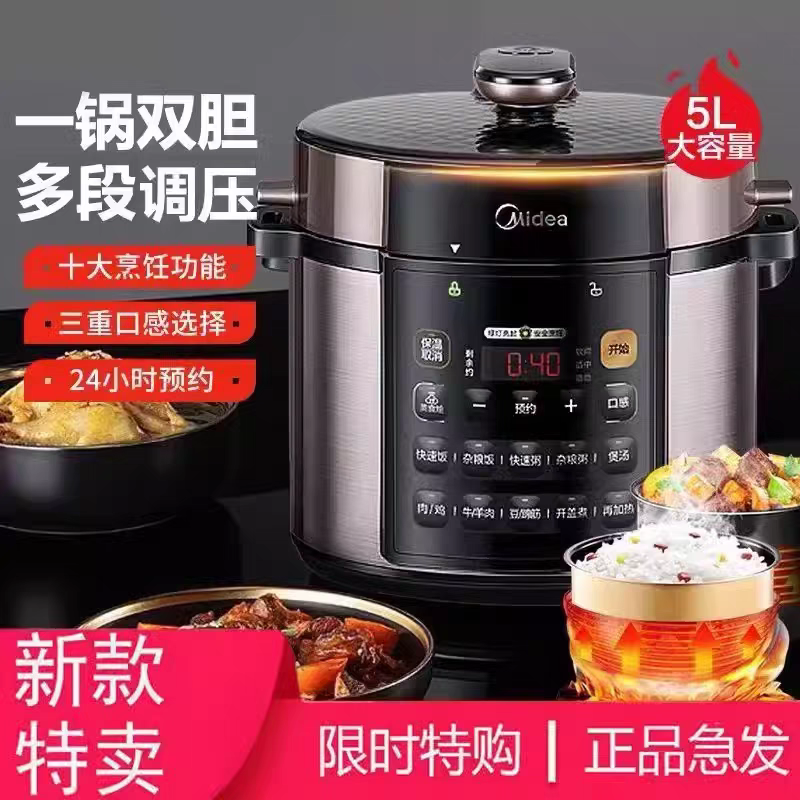 美的电压力锅家用双胆高压锅5升大容量多功能饭煲全自动官方正品