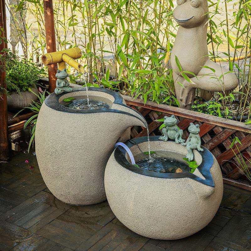 户外庭院落地流水摆件循环水喷泉古法鱼缸摆件室外造景阳台养鱼池