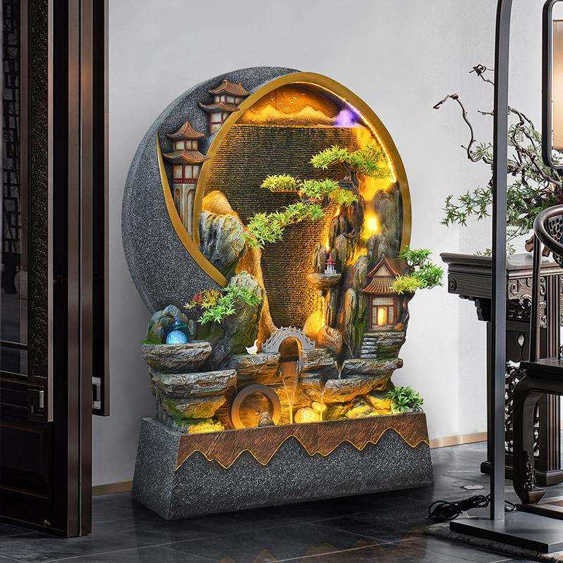 新中式流水摆件室内客厅电视柜旁循环水喷泉落地新居开业招财景观