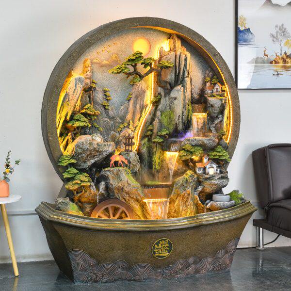 新中式流水摆件室内客厅电视柜旁循环水喷泉落地新居开业招财景观