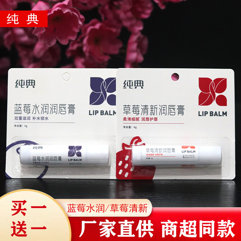 买1送1纯典蓝莓水润唇膏草莓清新护唇膏维生素E保湿防干裂学生