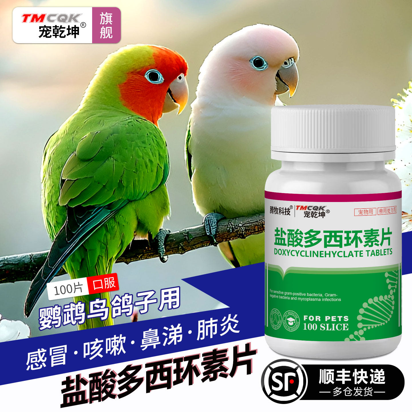 盐酸多西环素片鸟用虎皮玄凤鹦鹉鸽子衣支原体呼吸道咳嗽张嘴喘气