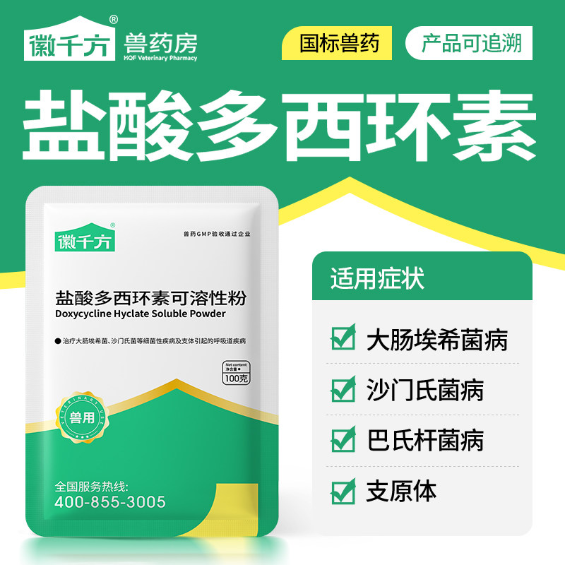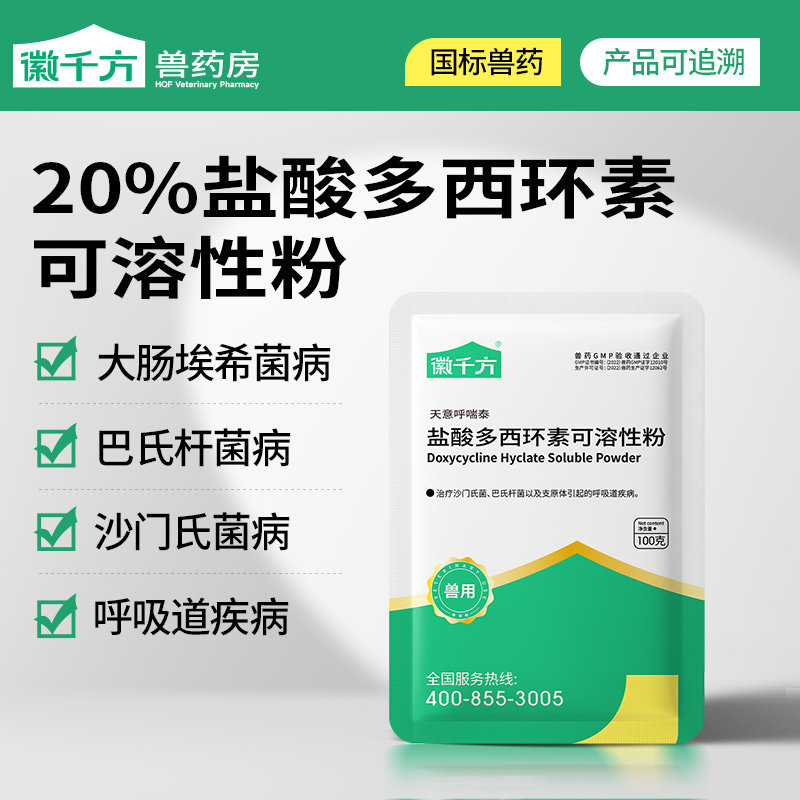 徽千方兽用盐酸多西环素强力霉素可溶性粉鸡用养鸡专用鸭鹅猪兽药