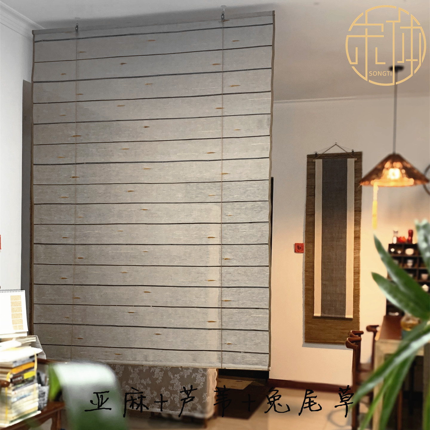 风水帘可升降卷帘阳台客厅玄关屏风装饰软隔断门帘麻布艺遮挡挂帘