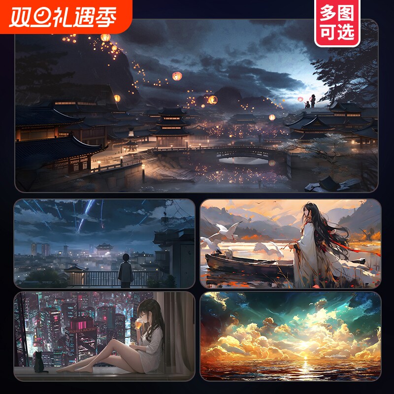 动漫风景鼠标垫超大二次元键盘笔记本电脑桌垫定制电竞高颜值桌面