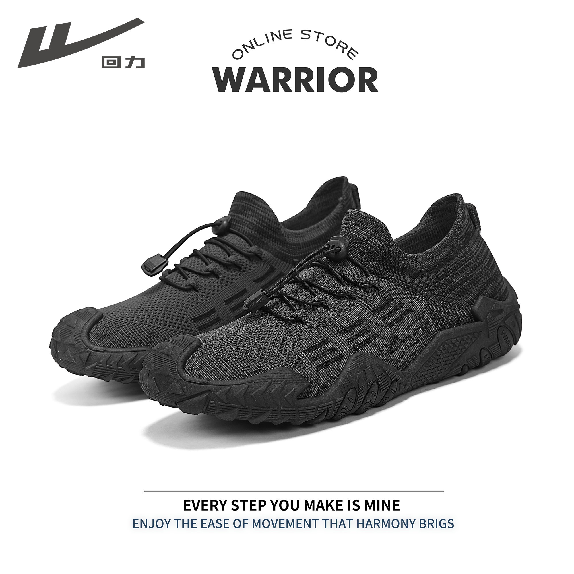 回力男鞋黑色运动鞋男款2026新款纯黑鞋子男款软底减震跑步鞋子男