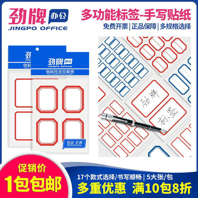 劲牌不干胶标签贴纸标签纸手写可粘贴姓名贴小学生标签贴口取纸口序纸粘贴纸名字贴纸空白便签贴纸易碎品标