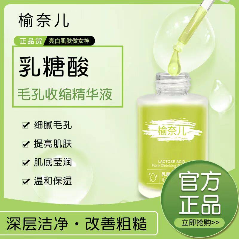 榆奈儿乳糖毛孔收缩精华液女面部提亮补水保湿水润不粘腻精华原液