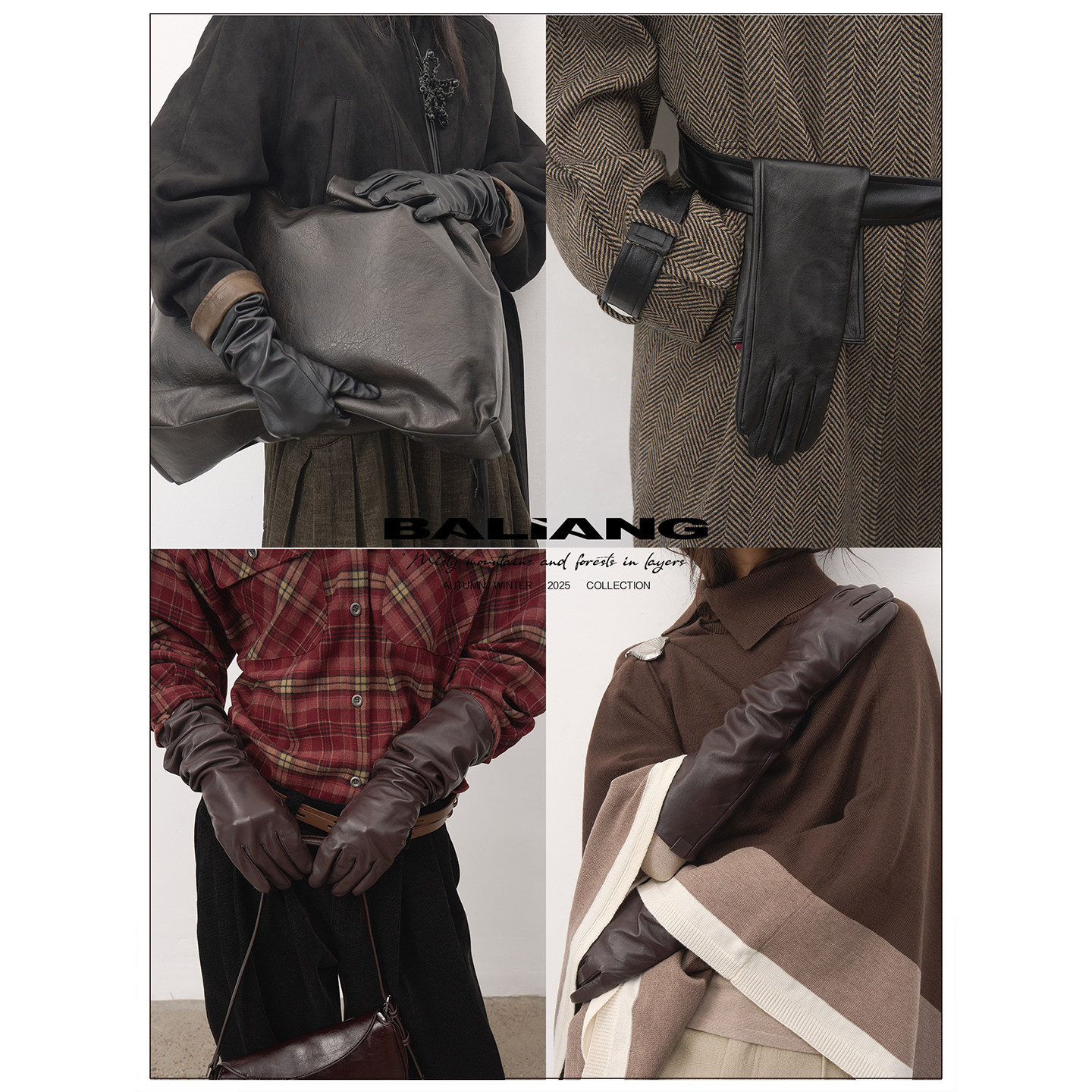 BALIANG「捌樑」 雹'Hail' 冬季长款造型真皮羊皮防风手套