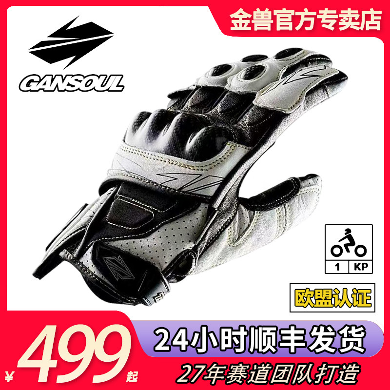 GanSoul金兽手套短款赛道竞技真皮羊皮防摔透气夏季摩托机车手套