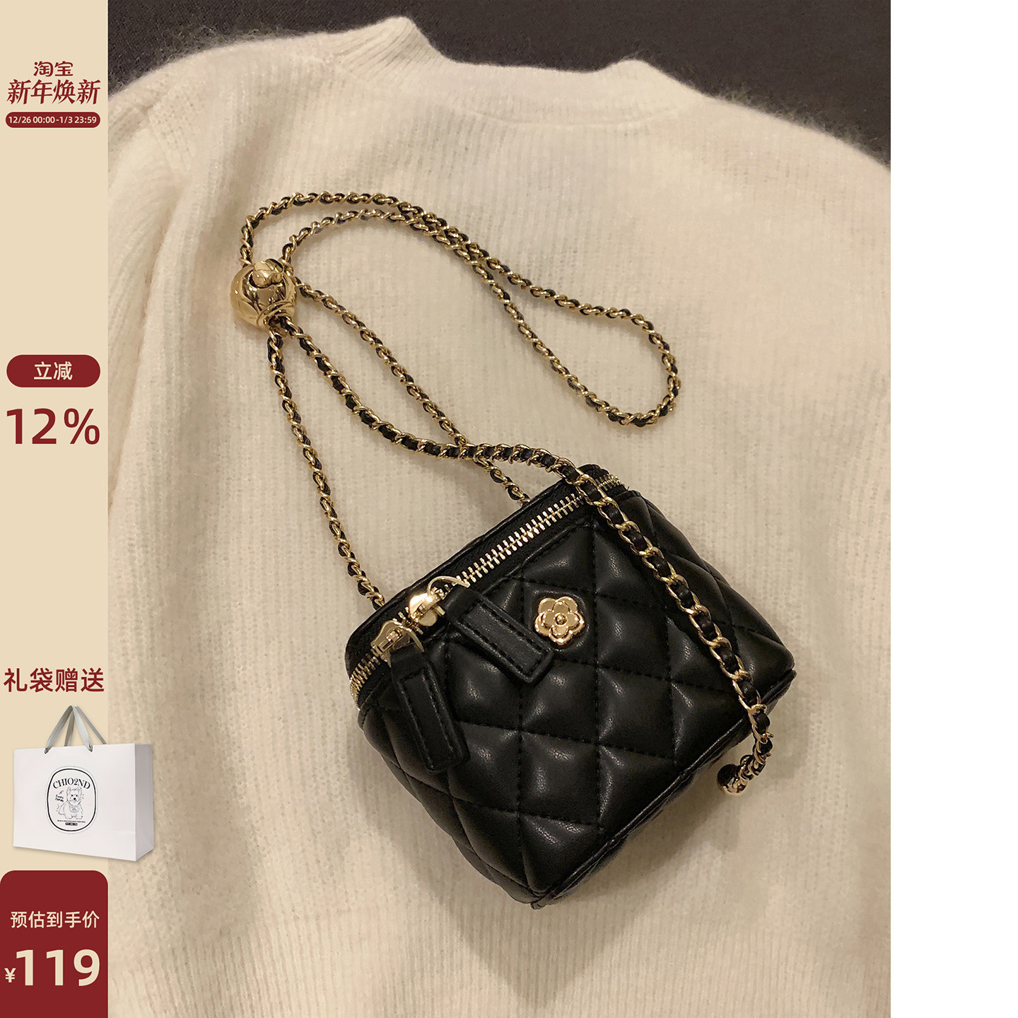 南风小铺秘密花园 山茶花菱格链条盒子小包包女冬迷你单肩斜挎包