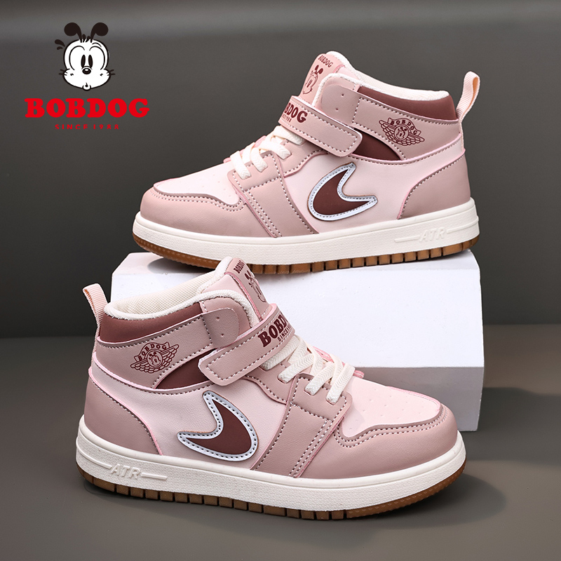 巴布豆童鞋女童高帮板鞋2025秋季新款皮面防水儿童运动鞋女孩鞋子