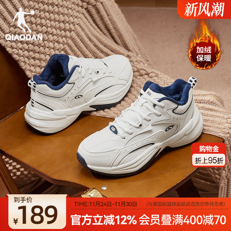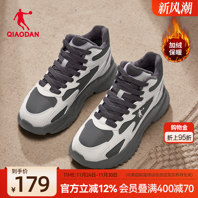 乔丹源生加绒保暖休闲鞋女棉鞋2025冬季新款高帮皮面防水老爹鞋子