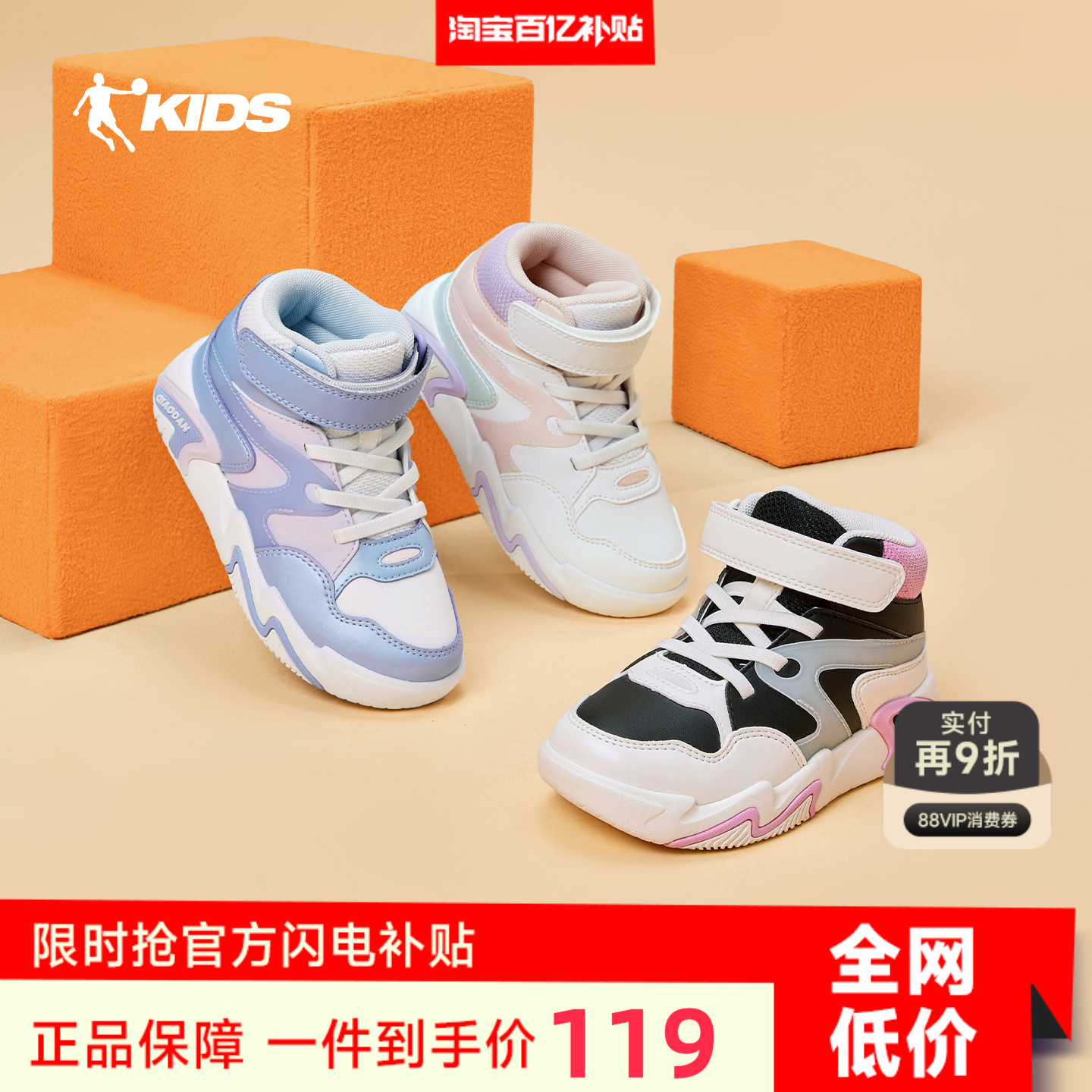 乔丹童鞋儿童高帮板鞋2025秋冬款女小童白色皮面休闲鞋女童运动鞋
