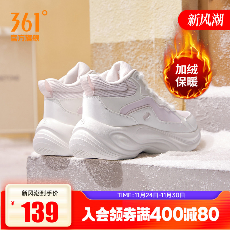 361灵狐女鞋加毛运动鞋2025冬季高帮加绒保暖棉鞋皮面防水跑步鞋