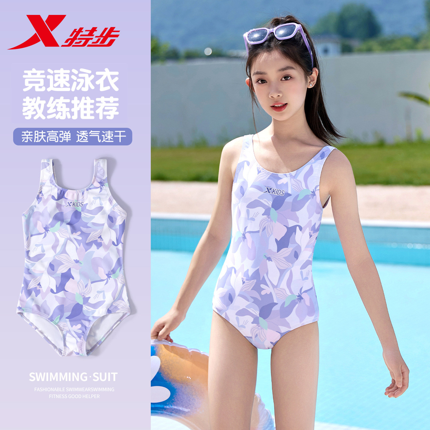 - 连体平角游泳衣