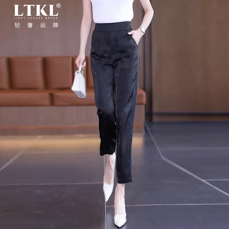 日单休闲直筒裤 夏季新款百搭时尚小脚裤 女修身棉质长裤子 04283