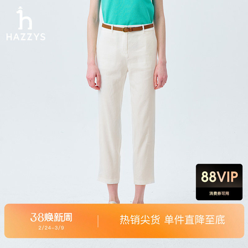 Hazzys哈吉斯白色裤子女士春夏季时尚休闲裤通勤舒适九分裤小脚裤