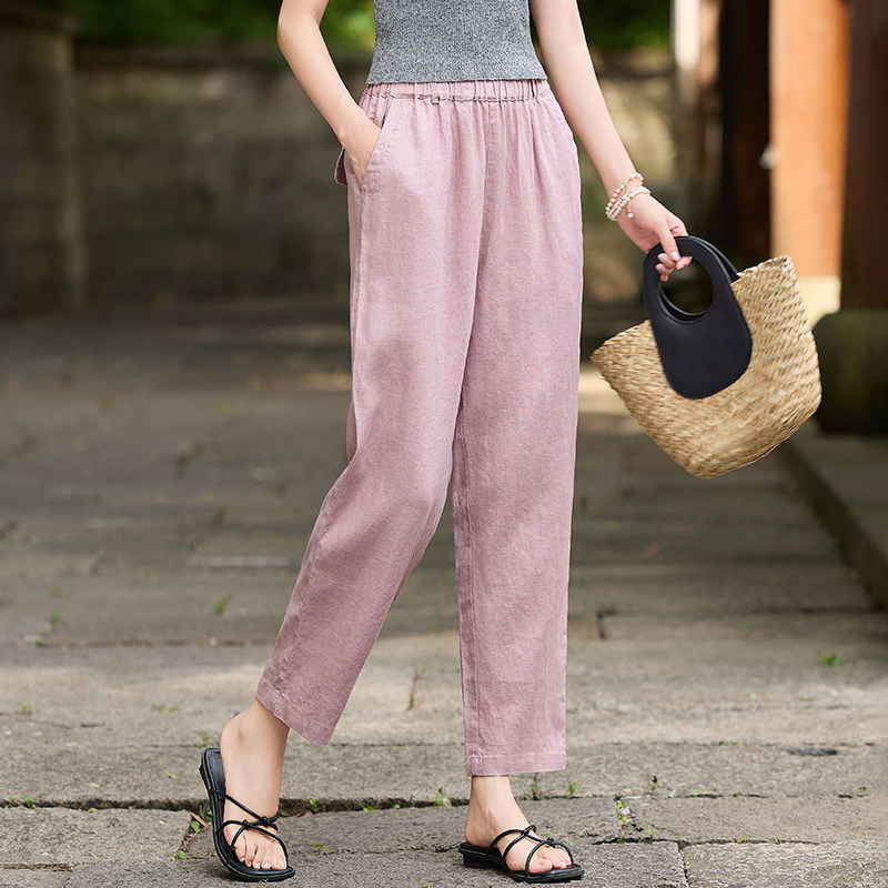 哈伦裤女夏季厚款女裤夏宽松九分100%亚麻裤子休闲灯笼萝卜小脚裤