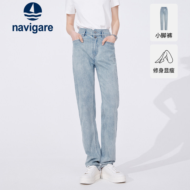 Navigare意大利小帆船蓝色水洗牛仔裤女夏季薄款休闲百搭小脚裤子