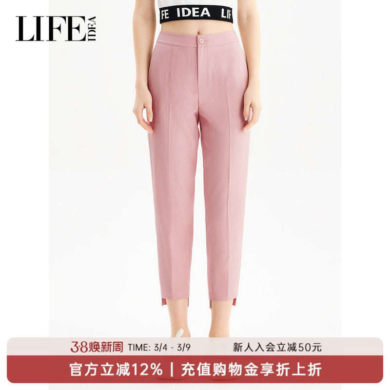 2025夏季纯棉休闲裤子女高腰宽松粉色薄款哈伦洋气百搭小脚九分裤