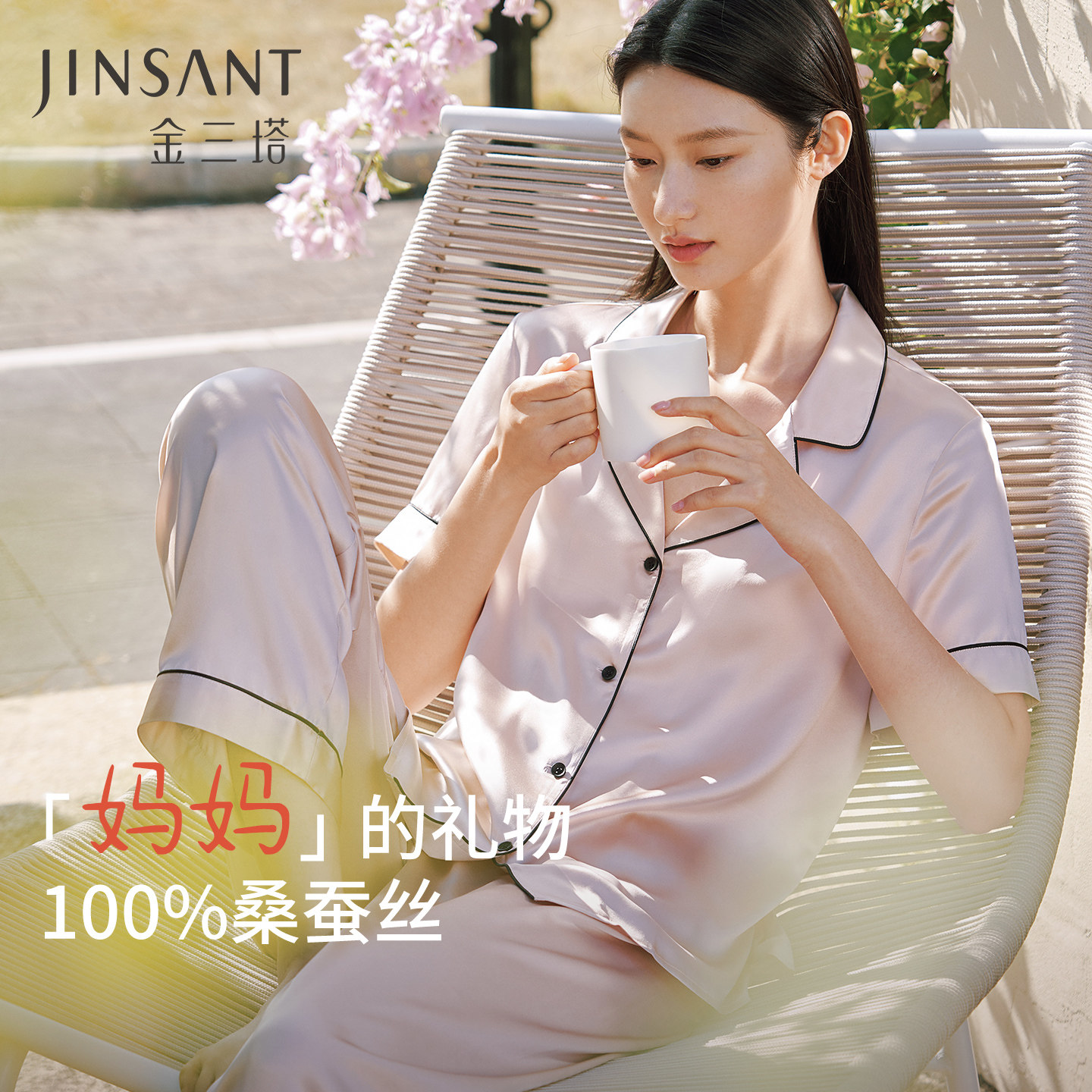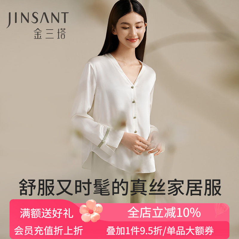 【真丝睡衣礼物】金三塔重磅蚕丝睡衣女100%桑蚕丝简约家居服套装