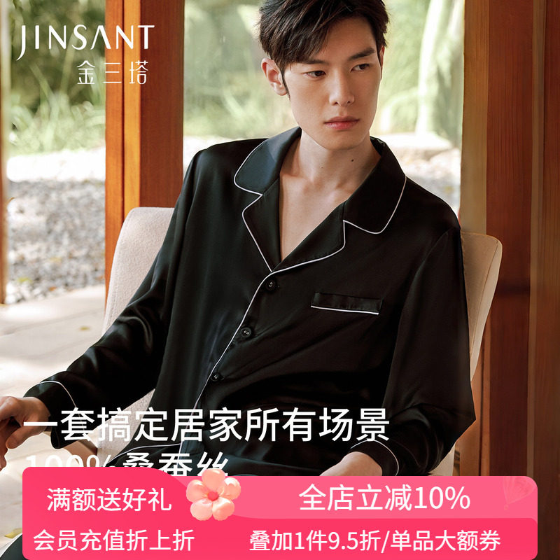 金三塔重磅真丝男睡衣宽松亲肤丝绸长袖桑蚕丝家居服送礼礼物新品
